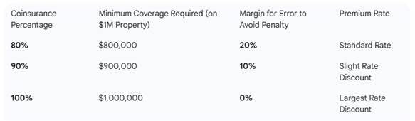 The coinsurance percentage defines the minimum amount of coverage you must carry to avoid a penalty. A lower percentage means a lower required coverage amount.